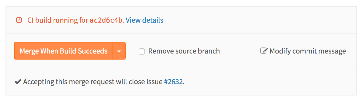 We get nice red-or-green-status, the quite useful “Merge automatically when the build succeeds” button — and, as branches are now tested before being merged, much less build breakage.