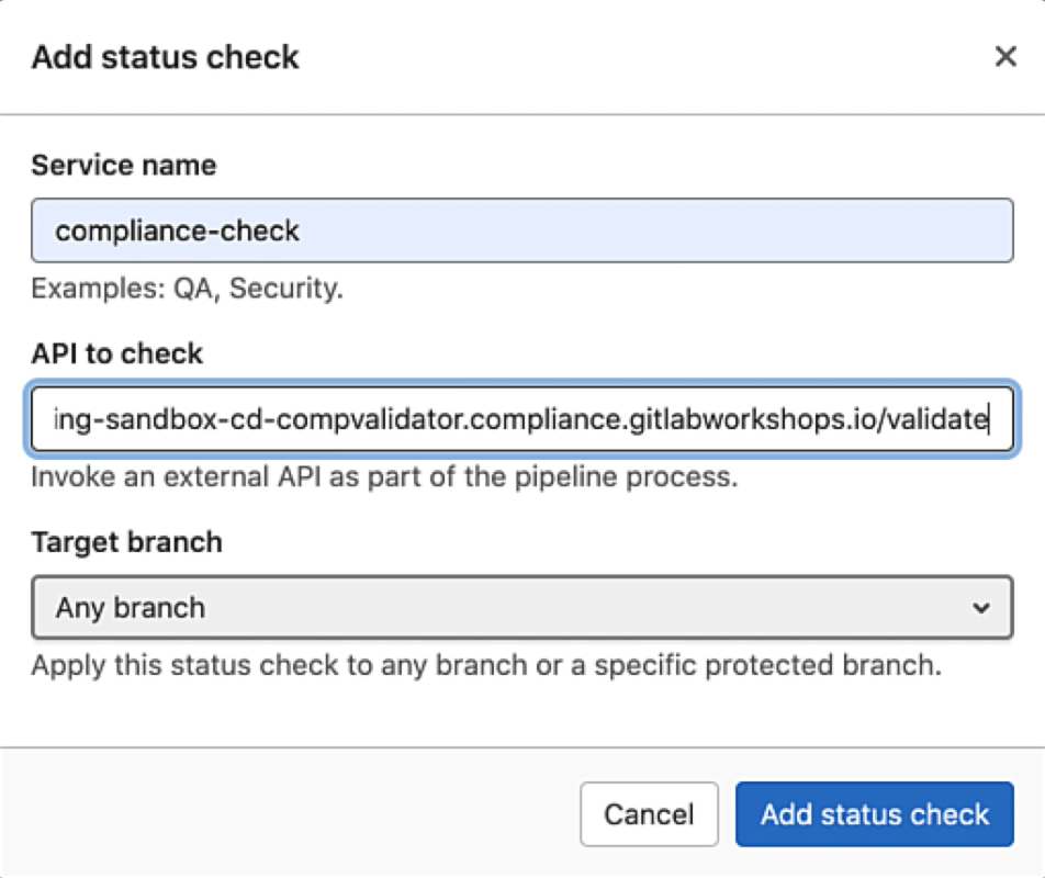 GitLab recently introduced "external status checks for merge requests," which are effectively API calls to systems/application that sit outside GitLab. As you could see, with external status checks for merge requests, we were able to integrate GitLab with a third-party system that required manual approval for a merge request, ensuring that your application updates meet compliance and audit requirements.