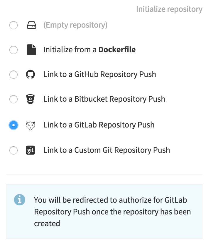 Choose Link to a GitLab Repository Push for the Initialize Repository option: