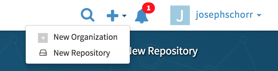 Click the + icon next to your username in the upper right hand corner of Quay.io, and click New Repository: