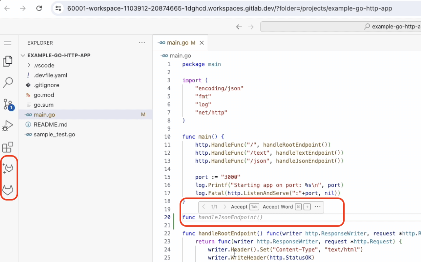 ワークスペースでGitLab Duoチャットコード提案を利用できるようになりました!すぐに回答が必要な場合や、コードを効率的に改善したい場合に、生産性を向上させ、ワークフローを効率化するように設計されたDuoチャットとコード提案を使用すれば、これまで以上に効率的かつ効果的にワークスペースでのリモート開発を進められます。