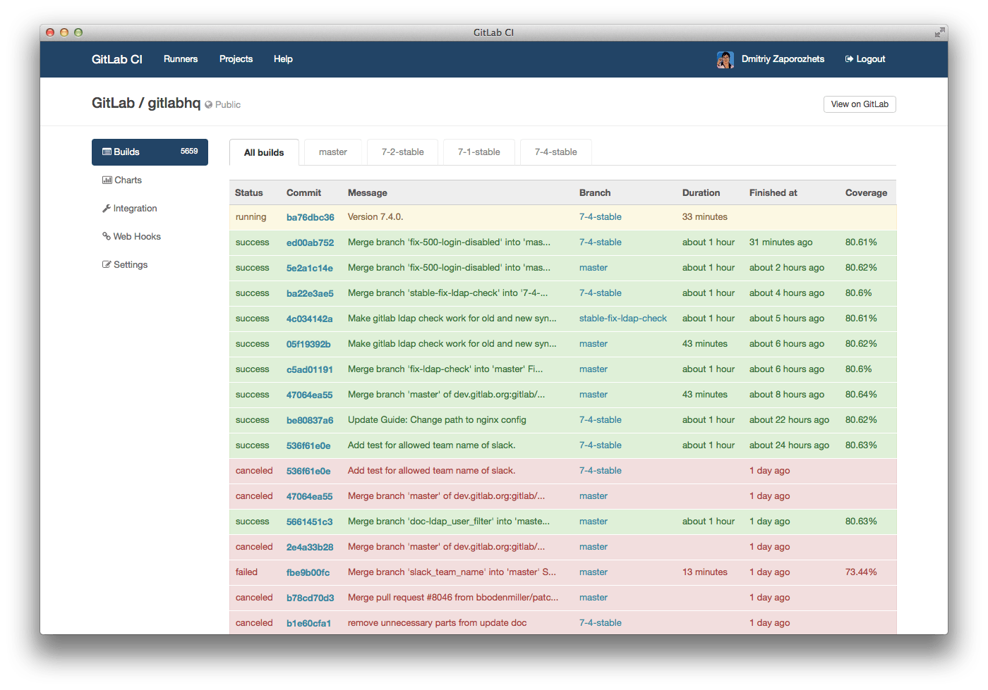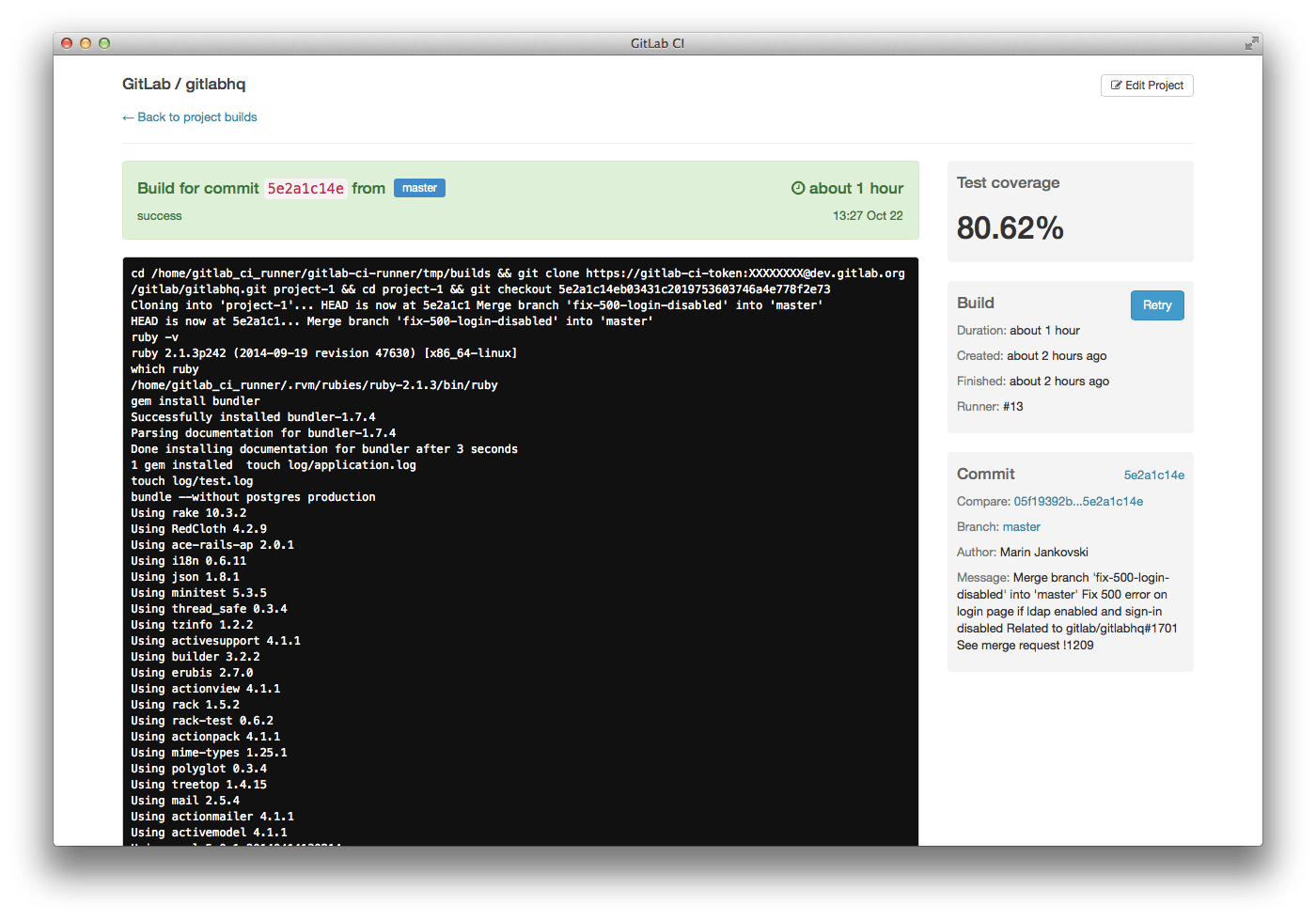 In addition, GitLab CI can now parse coverage information from builds and will show this on Merge Requests in GitLab and on the build page.