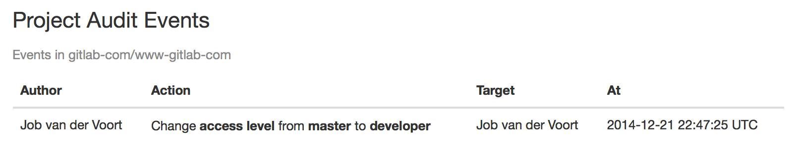 From 7.6 EE on, GitLab will automatically track member changes in the audit log for each project and group.
